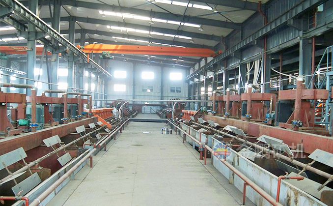 針對蒙古國此項目的具體礦石性質(zhì),我們采取了以下工藝流程:破碎采用三段 一閉路,設(shè)計采用兩個系列,每個系列為一段閉路磨礦分級。給礦粒度為0~12mm,產(chǎn)品細度-200目占70%,浮選精礦再磨產(chǎn)品粒度-325目占90%。一段磁選精礦再磨產(chǎn)品粒度-200目占85%。采用浮選+磁選的選別流程。原礦經(jīng)浮選,浮選粗精礦再磨再選后得到銅精礦,浮選尾礦磁選后精礦再磨磁選得到鐵精礦。浮選采用一粗三掃三精流程;磁選采用一粗二精流程。