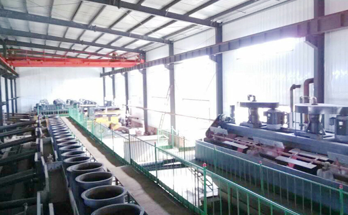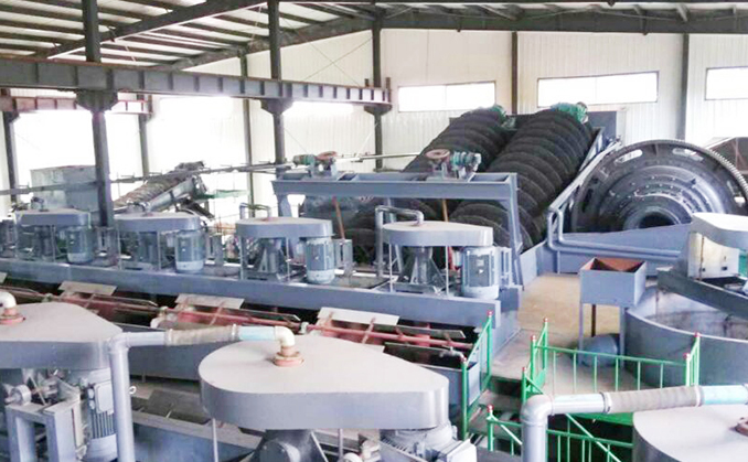 該項目分兩條生產線,第一條為2000t/d,第二條為1000t/d。破碎采用三段一閉路流程,浮選采用9磨11選,浮選精礦品位達到95%以上,浮選精礦經刨刀卸料離心機脫水后經過烘干機烘干,然后經過分目篩分成不同尺寸,然后進行銷售。