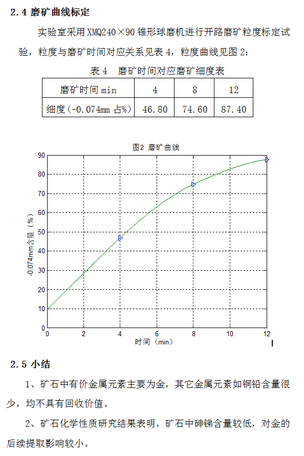 精礦和尾礦分析結果表。